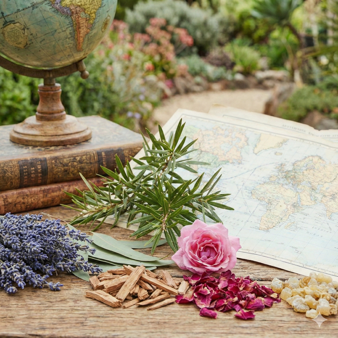 Beyond our local roots, we curate a selection of fine essential oils from trusted producers worldwide. This ensures you have access to a complete, high-quality botanical library.
